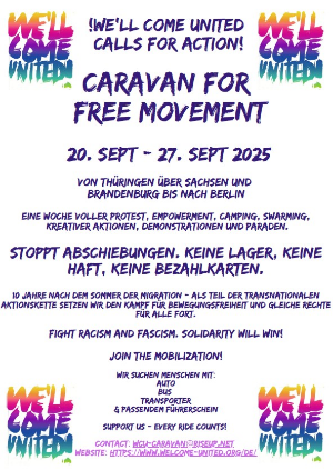 - 20.-27.9., Thüringen bis Berlin: CARAWANE – Stoppt Abschiebungen – Keine Lager – Keine Haft – Keine Bezahlkarte