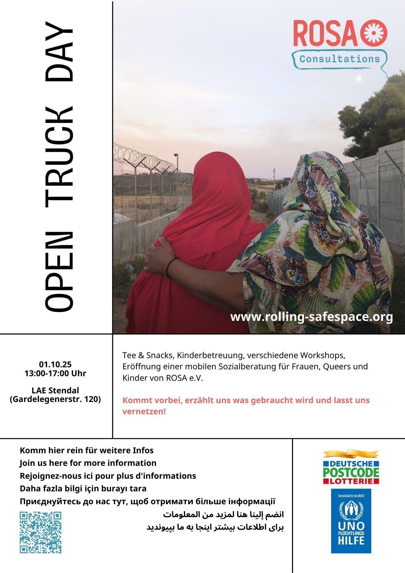 - Mi, 1.10., 13-17:00 Uhr, LAE Stendal: Open Truck Day von ROSA Consultations