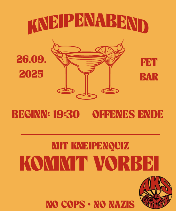 Fr, 26.9., 19:30 Uhr, FET-Bar, Stendal: Kneipenabend zum Kennenlernen des Antifaschistischen Kollektivs Stendal
